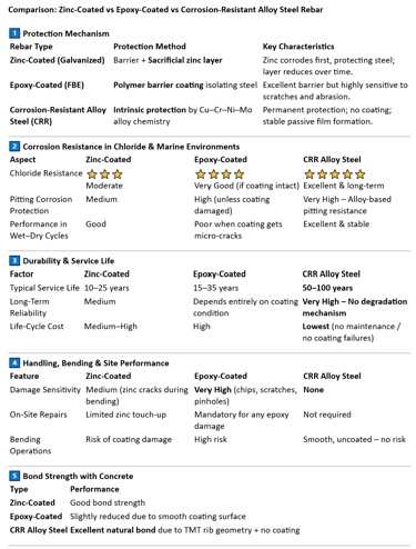 Benefits of CRR / Low-Alloy Corrosion-Resistant TMT Bars Compared to Carbon Steel Rebar