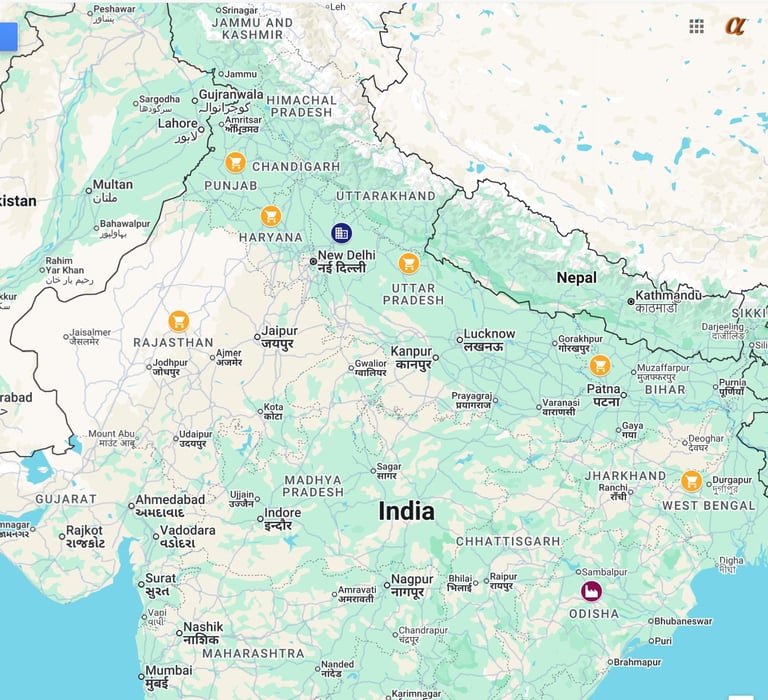 U.P. (Ghaziabad), Haryana (Faridabad), Punjab (Mandi Gobindgarh), Rajasthan (Jaipur), Bihar (Patna), West Bengal (Durgapur)