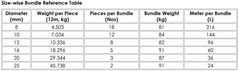 Straight-length bundles: Supplied on request with a minimum order quantity of 20 MT.