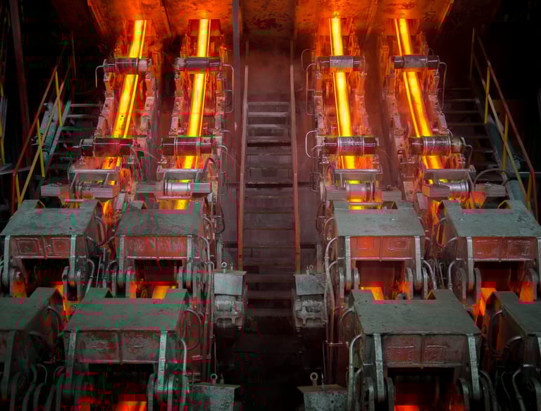 Casting: Refined molten steel is solidified through continuous casting into semi-finished billets or blooms.