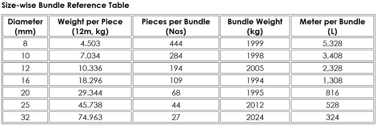 Brand / Bar Size / Steel Type / Grade / Manufacturing Process / ISI CML Number